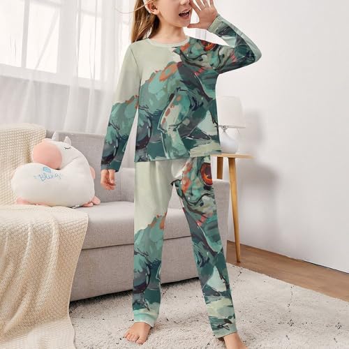 HOT ! Cartoon Monitor LizardChildren's Pajama Set Round Neck Long Sleeve Top + Pants Two-piece Set130CM