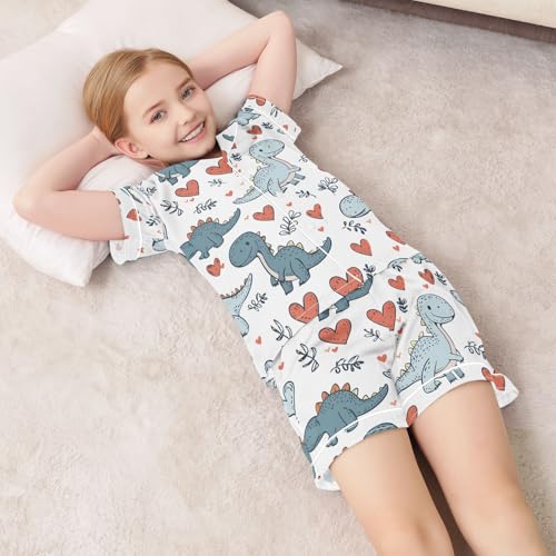 More information about ALAZA Cute Dinosaur Love Satin Pajamas Set Short Sleeve Button Down Sleepwear Summer Pjs 2 Piece