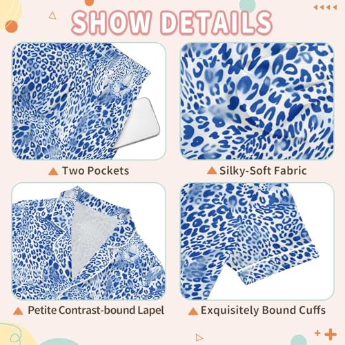 ALAZA Blue Leopard Print Animal Satin Pajamas Set Short Sleeve Button Down Sleepwear Summer Pjs 2 Piece 5