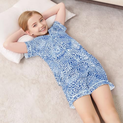 ALAZA Blue Leopard Print Animal Satin Pajamas Set Short Sleeve Button Down Sleepwear Summer Pjs 2 Piece 7