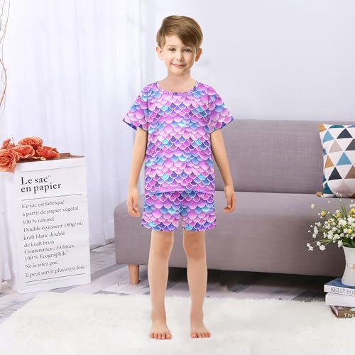 Mermaid Scales Pattern Pajama Set, Short Sleeve Cotton Sleepwear Nightwear 3