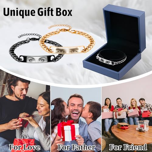 • 💎 Custom Eye Charm Bracelet: This unique bracelet for men features a personalized charm with the image of your loved one's eye, offering a distinctive and heartfelt accessory that embodies your special bond.