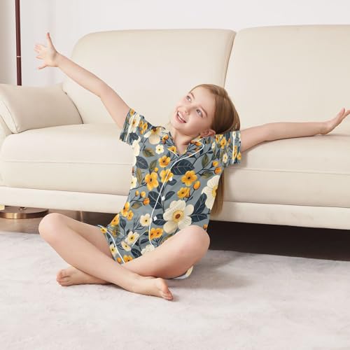 senya Pajama Sets Silky Button Down Nightwear Sleepwear Size 5-14 Years Flower Color Yellow White Pattern 7