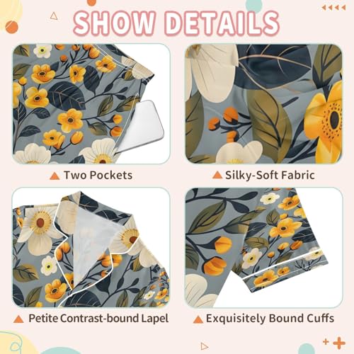 senya Pajama Sets Silky Button Down Nightwear Sleepwear Size 5-14 Years Flower Color Yellow White Pattern 6