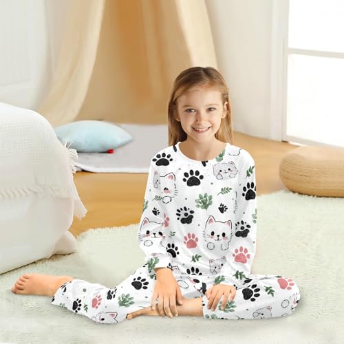 Long Sleeve Pajama Set for Girls Boys,Cute Cats and Prints Comfy Crewneck Sleepwears,Soft Kid's Homewear Clothes Underwear Sets 3T 5