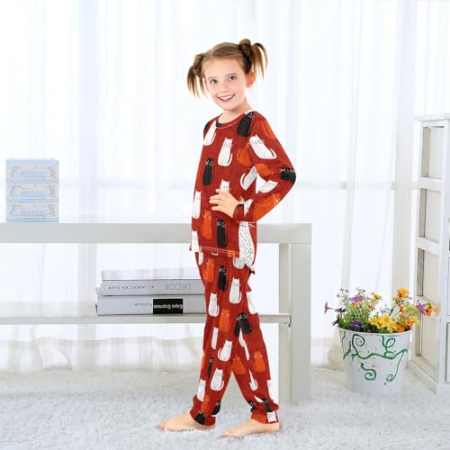 Cats on Red Background Soft Pajama Set for All Seasons,Breathable Pjs Long Sleeve Sleepwear,Comfy Loungewear 2 Piece Underwear Set 3T 7