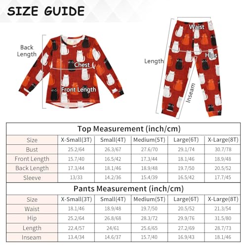 More information about Cats on Red Background Soft Pajama Set for All Seasons,Breathable Pjs Long Sleeve Sleepwear,Comfy Loungewear 2 Piece Underwear Set 3T