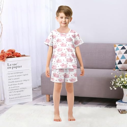 Vdsrup Cute Pigs Hearts Summer Pajamas Set Short Cotton Pink Sleepwear 2 Piece Unisex 5Y 2