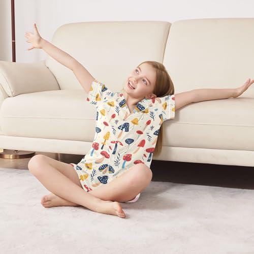 ALAZA Colorful Mushroom Leaf Pajamas Satin Pajama Set Short Sleeve Button Down Sleepwear 2