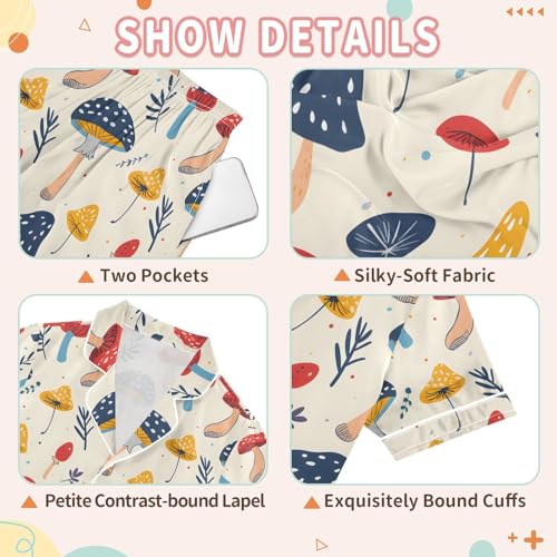 ALAZA Colorful Mushroom Leaf Pajamas Satin Pajama Set Short Sleeve Button Down Sleepwear 1
