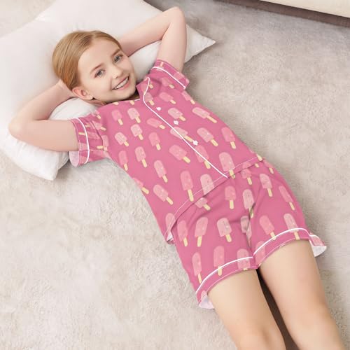 Pink Ice Cream Pajamas Sets Short Sleeve Silk Stain Pjs Button Down Sleepwear for 5-14Y 6