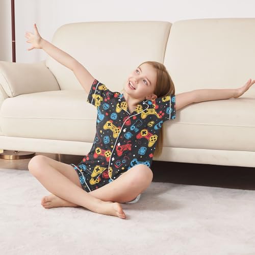 ALAZA Color Gamepad Pajamas Satin Pajama Set Short Sleeve Button Down Sleepwear 6