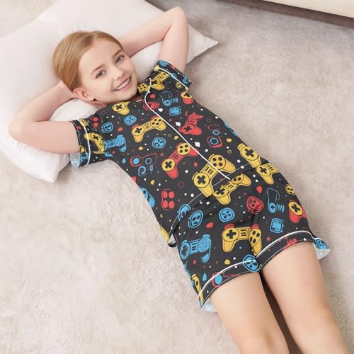 ALAZA Color Gamepad Pajamas Satin Pajama Set Short Sleeve Button Down Sleepwear 1