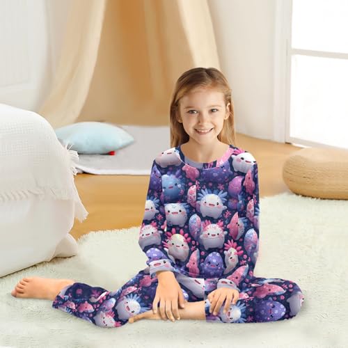 Cute Axolotls Floral Eggs Kawaii Soft Pajama Set for All Seasons,Breathable Pjs Long Sleeve Sleepwear,Comfy Loungewear 2 Piece Underwear Set 3T 7