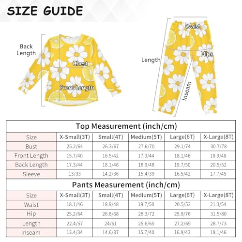 Lemon Slice Daisy Pattern Soft Pajama Set for All Seasons,Breathable Pjs Long Sleeve Sleepwear,Comfy Loungewear 2 Piece Underwear Set 8T 3