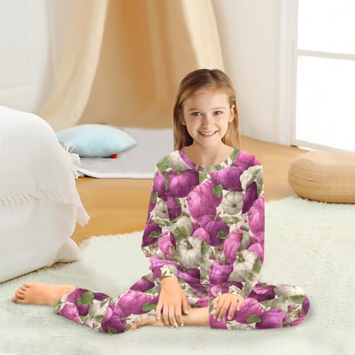 Purple White Pumpkins Fall Soft Pajama Set for All Seasons,Breathable Pjs Long Sleeve Sleepwear,Comfy Loungewear 2 Piece Underwear Set 8T 1