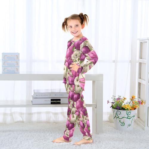 Purple White Pumpkins Fall Soft Pajama Set for All Seasons,Breathable Pjs Long Sleeve Sleepwear,Comfy Loungewear 2 Piece Underwear Set 8T 4