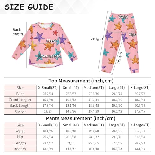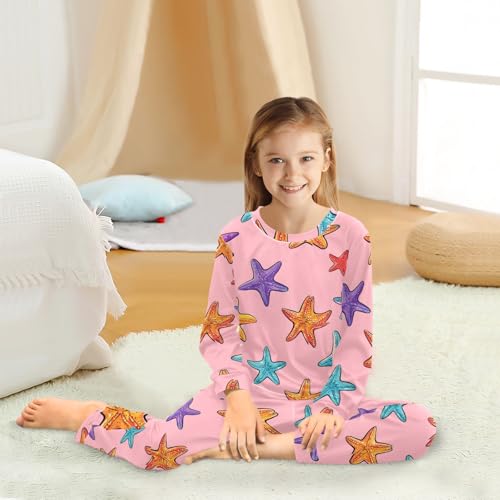 Starfish Pattern on Pink Soft Pajama Set for All Seasons,Breathable Pjs Long Sleeve Sleepwear,Comfy Loungewear 2 Piece Underwear Set 3T 7