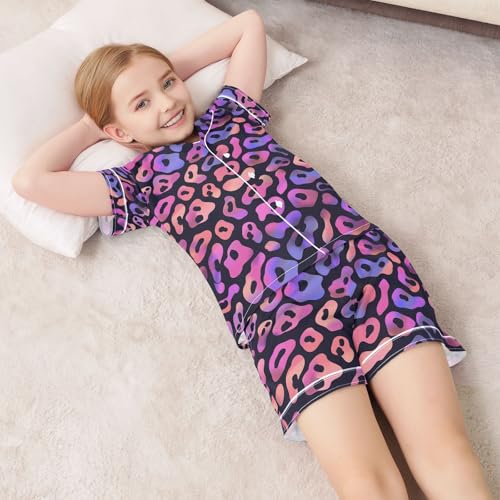 ALAZA Leopard Print Color Animal Pajamas Satin Pajama Set Short Sleeve Button Down Sleepwear 3