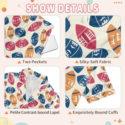 ALAZA Red Blue Rugby Ball American Football Pajamas Satin Pajama Set Short Sleeve Button Down Sleepwear 7
