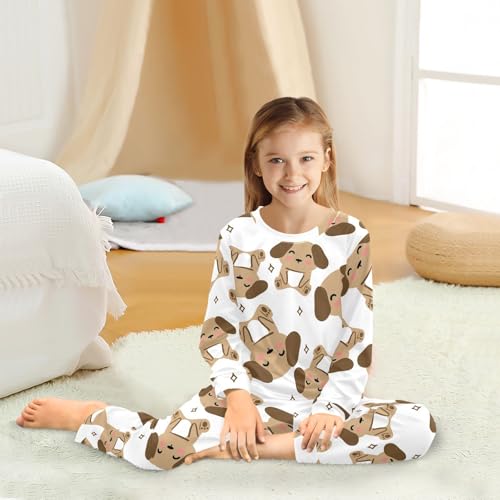 Long Sleeve Pajama Set for Girls Boys Kids,Cartoon Cute Dog Brown Comfy Nightwear Soft Loungewear,Family Matching PJs Underwear Set 6T 6