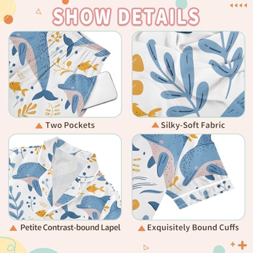 ALAZA Cute Whale Fish Dolphin Pajamas Satin Pajama Set Short Sleeve Button Down Sleepwear 7