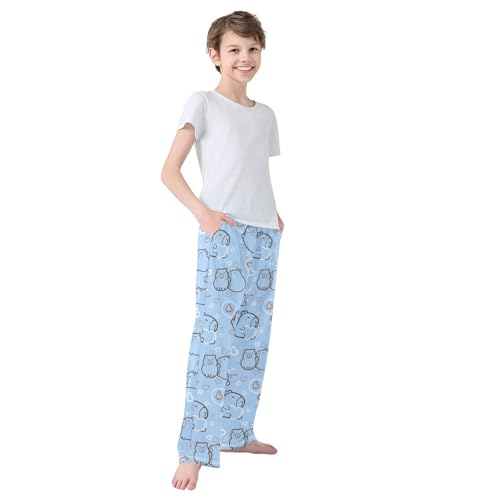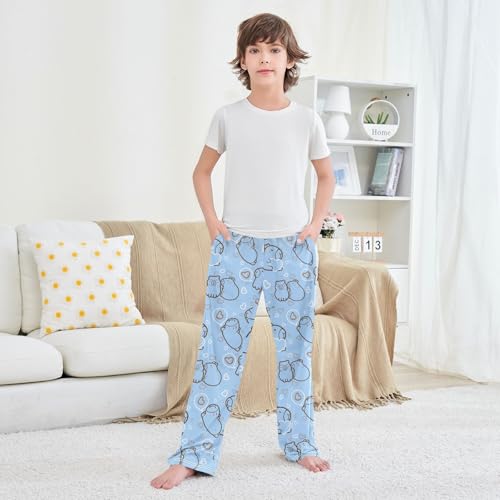 Cute Capybara with Hearts Blue Cute Pajama Pants, Soft Sleepwear Lounge Pants Pajama Pj Bottoms for 6-14 Years 7