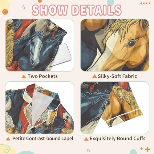 More information about Satin Pajama Sets Short Sleeve Colorful Cool Horses Pattern Button Down Silky Nightwear 2 Piece PJS 5-14Y