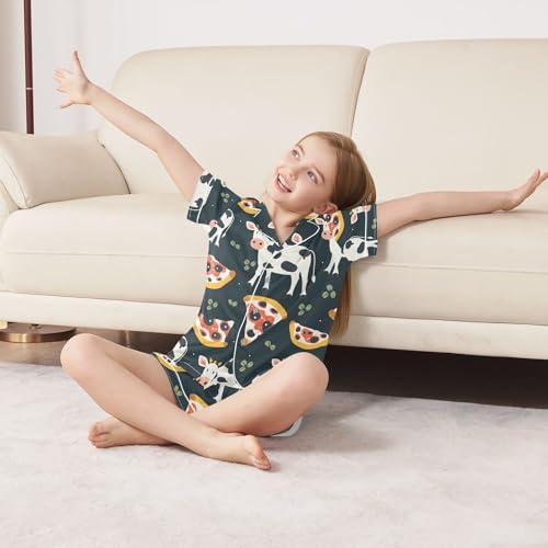 ALAZA Cow Pizza Cartoon Pajamas Satin Pajama Set Short Sleeve Button Down Sleepwear 4