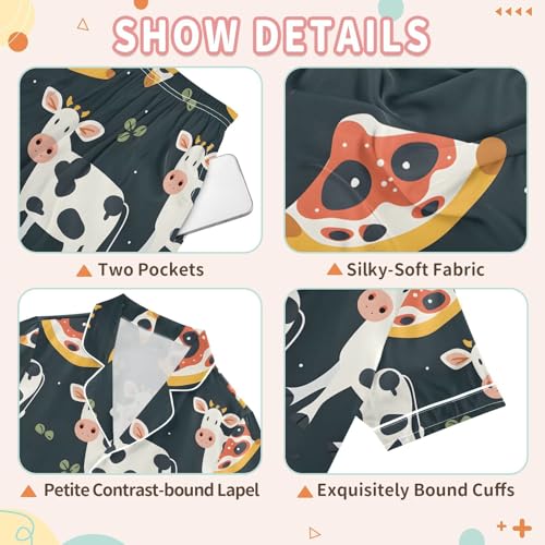 ALAZA Cow Pizza Cartoon Pajamas Satin Pajama Set Short Sleeve Button Down Sleepwear 7