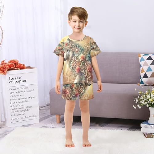 Floral Wolf Golden Pajama Set Short Sleeve Nightwear Soft Clothes Set Summer Pajamas Cotton 5Y 5