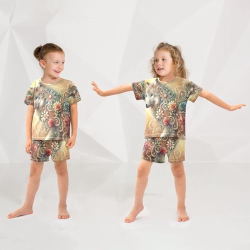 Floral Wolf Golden Pajama Set Short Sleeve Nightwear Soft Clothes Set Summer Pajamas Cotton 5Y 6