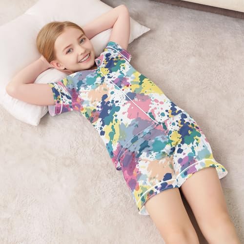 ALAZA Watercolor Spots Abstract Pajamas Satin Pajama Set Short Sleeve Button Down Sleepwear 6