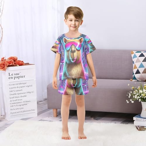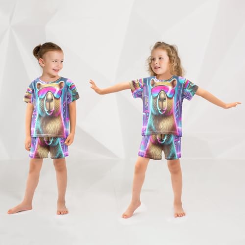 Capybara Cyber City Pajama Set Short Sleeve Summer Pajamas Sleepwear Nightwear Set Cotton 5Y 6