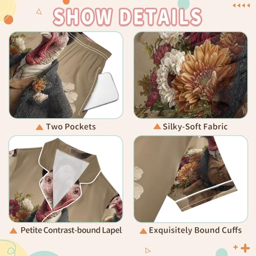 Satin Pajama Sets Short Sleeve Turkey Thanksgiving Funny Button Down Silky Nightwear 2 Piece PJS 5-14Y 6