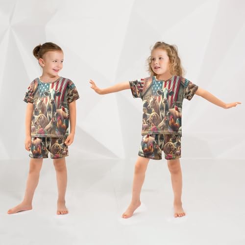 Farm Cows Brown Pajama Set Short Sleeve PJS 2 Piece Summer Pajamas Shorts Sets Cotton 5Y 4