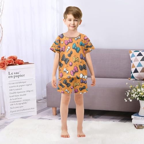 Pajama Sets Short Sleeve Colorful Bows and Polka Dots Soft Cotton Summer Sleepwear 2 Piece PJS Size 5-14T 5