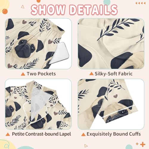ALAZA Pug Dog Cartoon Yellow Satin Pajamas Set Short Sleeve Button Down Sleepwear Summer Pjs 2 Piece 6