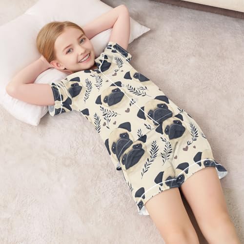 ALAZA Pug Dog Cartoon Yellow Satin Pajamas Set Short Sleeve Button Down Sleepwear Summer Pjs 2 Piece 7