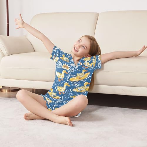 ALAZA Duck Surfboard Blossom Pajamas Satin Pajama Set Short Sleeve Button Down Sleepwear 4