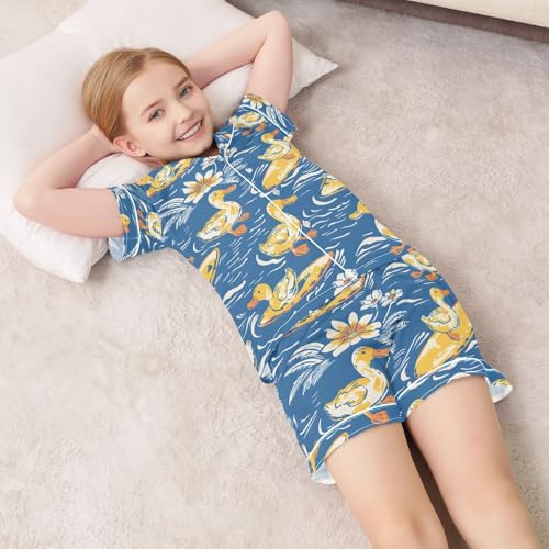 HOT ! ALAZA Duck Surfboard Blossom Pajamas Satin Pajama Set Short Sleeve Button Down Sleepwear