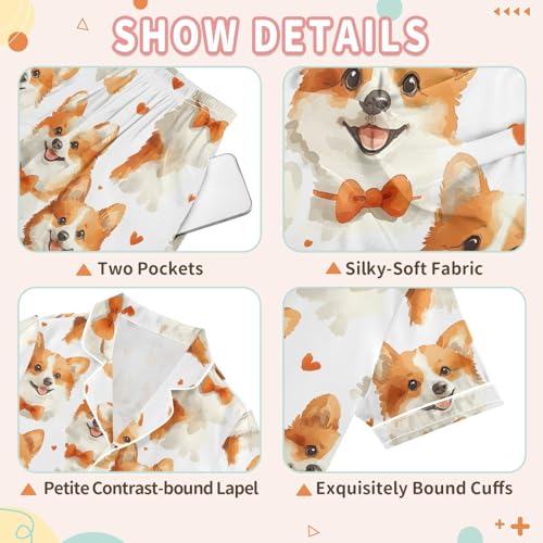 ALAZA Dog with Bow Tie Heart Satin Pajamas Set Short Sleeve Button Down Sleepwear Summer Pjs 2 Piece 7