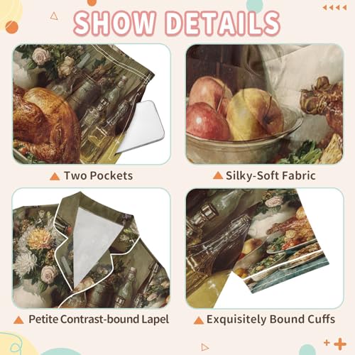 More information about Satin Pajama Sets Short Sleeve Thanksgiving Feast with Turkey Button Down Silky Nightwear 2 Piece PJS 5-14Y