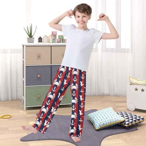 ALAZA Striped Crab Anchor Pajama Lounge Pants Long Sleep Pajama Bottoms with Pockets 1