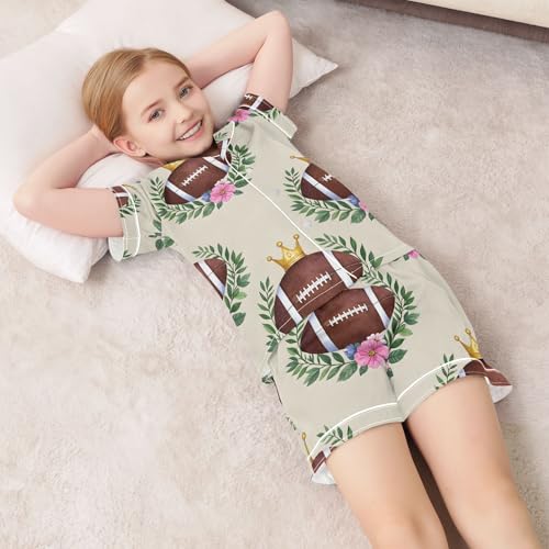 ALAZA Crown American Football Retro Satin Pajamas Set Short Sleeve Button Down Sleepwear Summer Pjs 2 Piece 1