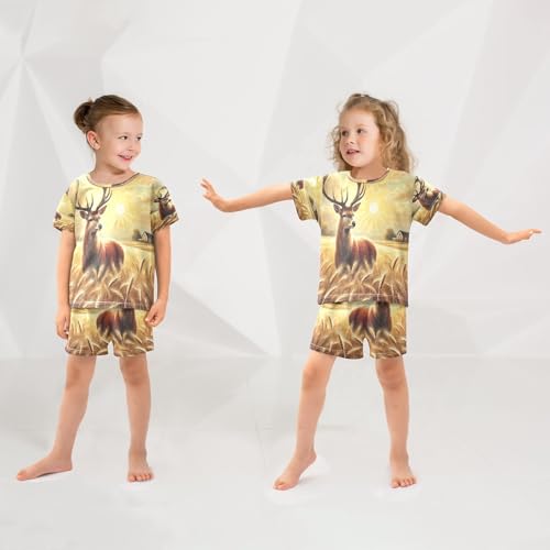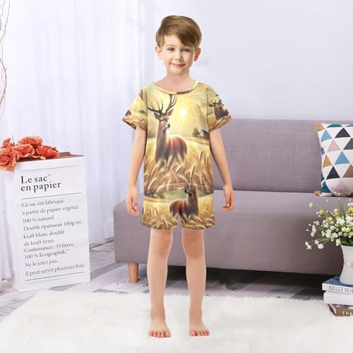 Deer Wheat Field Golden Pajama Set Short Sleeve Summer Pajamas Shorts Sets PJ Clothes Set Soft 5Y 1