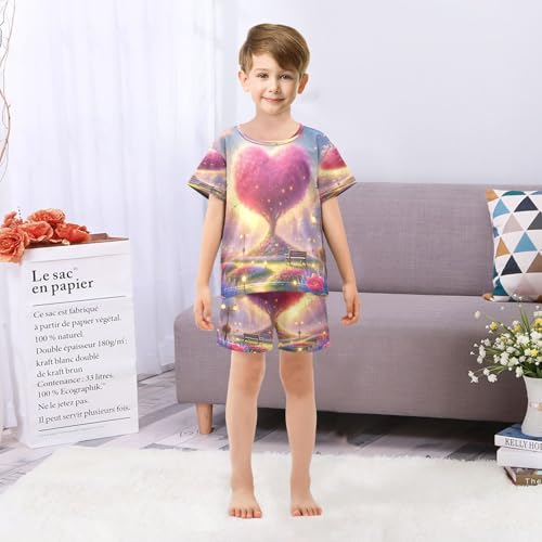 Heart Tree Park Valentines Pajama Set Short Sleeve Pajamas Shorts Sets Cotton PJS 2 Piece Clothes Set 5Y 2