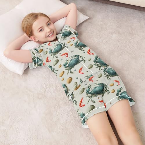 ALAZA Crab Shrimp Lobster Satin Pajamas Set Short Sleeve Button Down Sleepwear Summer Pjs 2 Piece 1
