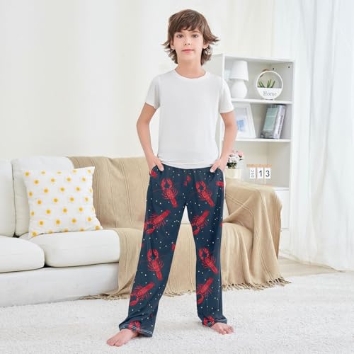 ALAZA Lobster Blue Polka Dots Pajama Lounge Pants Long Sleep Pajama Bottoms with Pockets 1