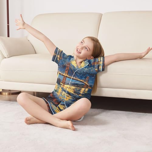 ALAZA Van Gogh Starry Sky Bridge Satin Pajamas Set Short Sleeve Button Down Sleepwear Summer Pjs 2 Piece 1